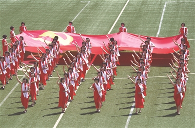 6月10日,由北京市总工会女工部和通州区总工会共同主办的“巾帼心向党·建功新时代”“旗袍秀”展演活动在通州奥体中心举行。100名女职工身着红色旗袍,进行了集体走秀、舞台剧展示等活动,并通过摆出“100”的数字造型、展开巨幅党旗、齐唱红歌等形式,献礼中国共产党成立100周年。