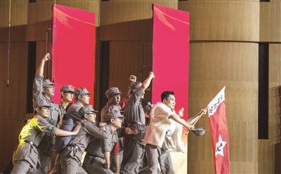 展演现场,《绣红旗》《英雄赞歌》《我爱你,中国》《不忘初心》……一首首饱含深情和力量的歌曲接连响起,首都金融行业的18支合唱团队依次登台。他们有的在合唱中加入舞蹈,通过两位舞蹈演员与合唱队员的配合,展现红军和百姓之间深厚的鱼水情;有的融入话剧元素,再现了被关押在渣滓洞的女囚们听到新中国成立的消息后,一针一线绣红旗的场景;有的队伍一人怀抱一把吉他,共同咏唱对祖国的热爱之情。