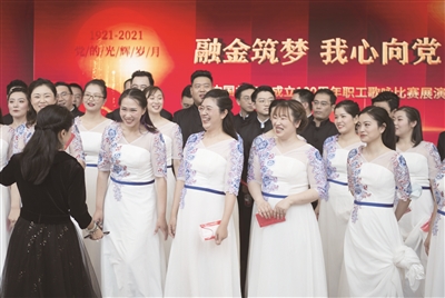 “一针针一线线,绣出一片新天地。千分情万分爱,化作金星绣红旗……”6月17日,悠扬的歌声回荡在国图艺术中心音乐厅内,由北京市总工会金融工会主办的“融金筑梦,我心向党”庆祝中国共产党成立100周年职工歌咏比赛展演活动在这里举行。北京市金融工会系统的18支展演团队、700余名干部职工齐聚一堂,用歌声重温红色革命历史,追忆红色金融岁月。