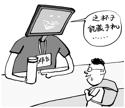 近日,一款可藏手机的水杯引发广泛关注。网传视频显示,该款水杯外观和普通杯子一样,但是底座可以打开,杯体中有一个空间恰好可以放入手机。记者检索发现,多家网店在公开销售此类水杯,并宣称是“上课藏手机神器”。水杯生产厂商一名工作人员告诉记者,该款水杯原来是透明的,供运动人士放手机用,后来在经销商要求下生产了不透明水杯。(6月21日 《北京青年报》)□王铎