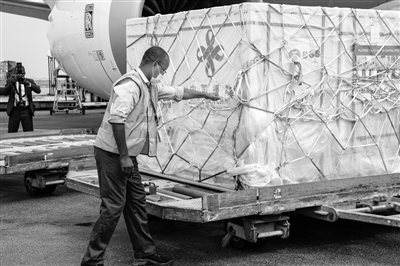6月23日,在科特迪瓦阿比让国际机场,中国援助的新冠疫苗从飞机上卸下。当日,中国政府向科特迪瓦政府援助的新冠疫苗运抵阿比让。 新华社发