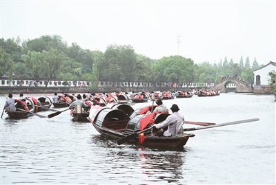 2021年,是中国共产党建党100周年,为庆祝建党百年,日前,浙江省绍兴市举办“稽山秀水古越景 百船百幅展百年”水上图片展活动,为体现绍兴特色水乡文化,100艘乌篷船在东湖湖面上拼出了“100”字样,每条船的船篷两侧分别挂着2幅反映建党百年的珍贵历史照片作为党史展。照片以时间为序,精选自1921年以来的100幅珍贵历史照片,以中国共产党诞生为起点,通过珍贵瞬间,将发生在这百年间党和国家以及绍兴的重大历史事件进行展示。活动现场,还邀请了百余名市民和游客坐着乌篷船观看图片展。