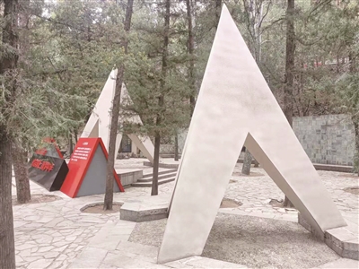“一二·九运动”纪念地为高大的苍松所掩映,止步于此,山风吹拂,松涛阵阵。那三座洁白而巨大的“人”字,在风中尽显挺拔有力,给人一种刚毅的精神激励。