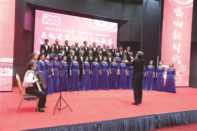 《唱支山歌给党听》《把一切献给党》……近日,由东城区永定门外街道总工会等举办的“永外街道庆祝中国共产党成立100周年红歌赛”举行。来自街道机关、辖区企业、社区等22支参赛队以优美歌声、动听旋律呈献一场音乐盛宴,激发街道党员干部职工的爱党爱国情。本报记者 边磊 通讯员 廖磊 摄影报道