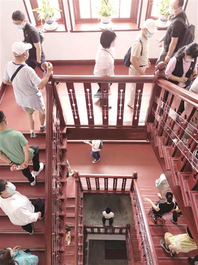 6月29日,北大红楼及“光辉伟业 红色序章”主题展览正式对外开放。北京市第六十五中学、北京市装饰协会、朝阳区六里屯街道、清华大学、华夏出行有限公司等企事业单位的职工们走进北大红楼,成为了首批参观者。