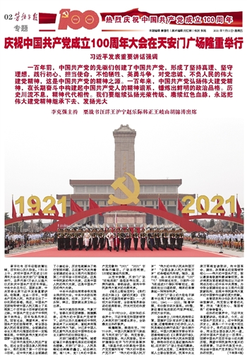 庆祝中国共产党成立100周年大会在天安门广场隆重举行