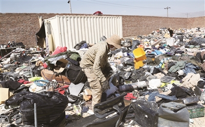 7月3日,在阿富汗帕尔万省的巴格拉姆空军基地附近,当地居民在美军遗留下的物品中回收废旧物。阿富汗国防部发言人福阿德·阿曼2日说,美国和北约军队日前已全部撤离巴格拉姆空军基地,该基地已正式移交给阿富汗军队。巴格拉姆空军基地位于阿富汗帕尔万省,距喀布尔约50公里。新华社发