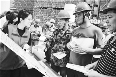 7月6日,江苏大学法律援助中心联合镇江市润州区七里甸司法所开展“送法进工地”活动,通过发放宣传资料、解读案例等,向农民工宣讲《保障农民工工资支付条例》以及相关的法律维权知识。(7月8日 《工人日报》)