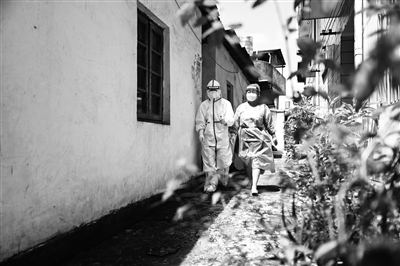 7月8日,友谊社区防疫人员入户准备为行动不便的老人进行核酸检测。云南省瑞丽市新冠肺炎疫情防控工作指挥部发布通告,7月7日0时起,对主城区实行封闭管理,所有市民居家隔离。目前,瑞丽市在市内设立23处保供点,联合电商配送平台及网格工作人员,保障居民生活必需品供应。 新华社发