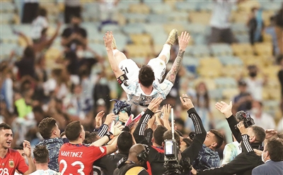 新华社电 2021美洲杯足球赛决赛10日晚在里约热内卢马拉卡纳大球场举行,阿根廷队凭借上半场迪玛利亚的进球1∶0战胜东道主巴西队,获得冠军。这是阿根廷球星梅西代表国家队捧起的首个成年国际大赛冠军。