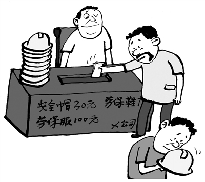 部分工程、制造行业及劳动密集型企业强制职工入职时交劳保用品押金。不交押金,工人非但领不到安全帽等劳保用品,还将面临难以入职的风险。律师对此表示,为职工免费提供或更换已损坏、已到使用期限的劳保用品,是企业不可推卸的责任。(7月12日《工人日报》)□陶小莫