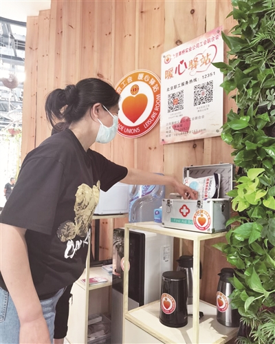 “户外工作者可以就近避暑,解决喝水、热饭、如厕问题;职工们可借用雨具和阅读报刊;途经这里的不同人群也能享受到咨询问路等便捷服务;总之,这是个有爱的地方……热了能纳凉,累了能歇脚,渴了能喝水,冷了可取暖,伤了可用药!”丰台街道工会服务站副站长杨婷深情地说。