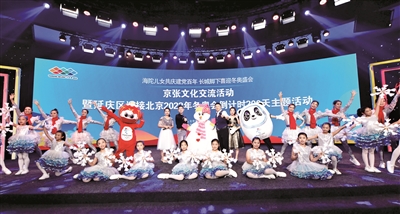 7月18日,“海陀儿女共庆建党百年 长城脚下喜迎冬奥盛会”京张文化交流活动(延庆站)暨延庆区迎接2022北京冬奥会倒计时200天主题活动在延庆区举行。活动以冬奥主题文艺汇演、两地文化交流、冬奥赛区连线为主要内容。图为演员进行以冬奥为主题的文艺表演。