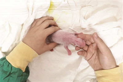 7月17日18时44分至19时34分,在位于四川卧龙的中国大熊猫保护研究中心卧龙神树坪基地内,大熊猫“苏珊”和“珍珍”相继生下两胎四仔熊猫宝宝。目前,两对双胞胎的老大都由母亲抚育,第二仔均由人工育幼。图为中国大熊猫保护研究中心卧龙神树坪基地的工作人员对“珍珍二仔”进行人工育幼。新华社发