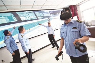 昨天,公交470车队的职工开始参加暑运VR训练。参训职工手持VR手柄,通过VR眼镜进行车辆检修作业。据车队工会相关负责人介绍,车队计划根据不同工作岗位,分批次对全体职工进行轮训。