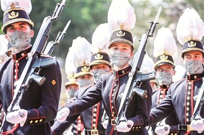 比利时7月21日在布鲁塞尔举行国庆阅兵及庆祝活动。受一周前发生的特大洪灾影响,今年比利时的国庆活动缩减了规模,原定在布鲁塞尔举行的大型舞会以及烟花燃放等活动全部取消。图为比利时王储、大公主伊丽莎白(中)在布鲁塞尔参加国庆阅兵式。新华社发