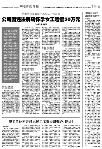 公司因违法解聘怀孕女工赔偿20万元