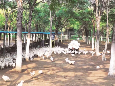 在西鲍辛庄村东侧的鸡棚,2000只北京油鸡鸡苗长势喜人,用不了多久能把它们拉到林子里散养去了。高震告诉记者,这2000只鸡苗来自北京市农林科学院,作为北京油鸡的保种单位,市农林科学院在帮扶之初就定下了村里林下养油鸡的计划,通过科技小院计划引进示范10000只油鸡。“加上村里自己又养了6000只白羽鸡,粗略地算了一下,通过林下养鸡,村里一年能增加收入约10万元。”