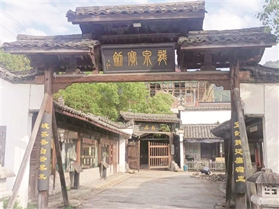 告别老师傅,我来到一座古朴的二层木构建筑前,只见门檐下悬有“祖师殿”之额,左右门柱上有楹联曰:“仰望七星辉碧天,剑池古迹今复建”。进得其中,见左边墙上斜挂一剑,书有“诗能下酒,剑可传人”。正堂白壁上画着一条神龙,正中供着捧剑的将军像,左右旗上绣着“欧冶遗风”“剑所环宇”,上悬匾额:“欧冶子铸剑大将军”。原来这里供奉的是制剑祖师爷欧冶子。驻足于此,我们不禁对铸剑大师平添一分仰慕之情。