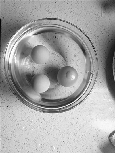 同等大小的鸡蛋,新鲜的往往比较重,手感发沉,不新鲜的因为失去了一部分水分,手感轻飘。将鸡蛋放入水中,观察其在水中的状态,新鲜鸡蛋会快速沉底,不新鲜的则会弹浮下沉。