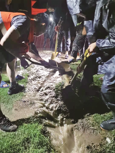 20日,中建二局一公司陕西分公司郑州碧桂园西湖项目组织30余名项目管理人员直面风雨,装填沙袋,在地势低洼的八号院施工现场和地下车库前迅速搭建防汛堤坝,确保项目安全。21日,碧桂园西湖项目组建防汛救灾突击队,驱车30余公里,驰援已经被困近17小时的郑州渠南新城项目,将40多名管理人员和工友妥善安置。