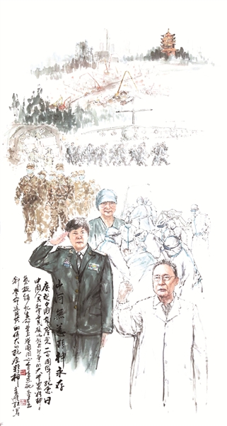 红船精神、井冈山精神、长征精神、抗美援朝精神、“两弹一星”精神、脱贫攻坚精神、伟大抗疫精神,近日记者在中钢国际大厦展厅参观了书画家孙晓材创作的《精神组画》中国画系列作品。“今年是中国共产党成立100周年,我用中国画的视觉表现形式挖掘描绘了红色基因的精神内涵,用心、用情、用画笔讲述红色故事。”孙晓材说。