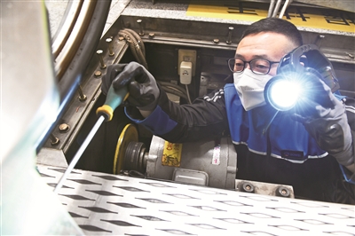 除了对电梯进行维修、保养,刘辰青和同事们还有一项重要的工作——每日巡检,主要是查看电梯外观有没有损坏的地方,听听设备运行时有没有发出异响等,航站楼上百部电梯分布在各个位置,维修工每天都至少要走3万步,才能巡检一遍。这只是每日的“打底”工作,在岗期间,还要时刻都保持着待命状态,一旦有突发情况,他们就要像消防队员紧急集合那样冲到现场,刘辰青说:“我们有规定,任何一部电梯出现故障,必须在10分钟内到场处理。”