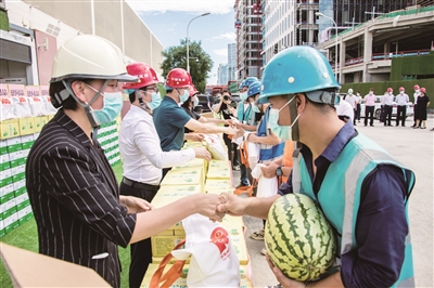 本报讯(记者 马超) 近日,北京市建筑工会来到国家会议中心二期项目,对北辰集团、建工集团和中建二局的冬奥工程建设者和服务保障一线职工进行走访慰问,并送上了清凉消暑慰问品。