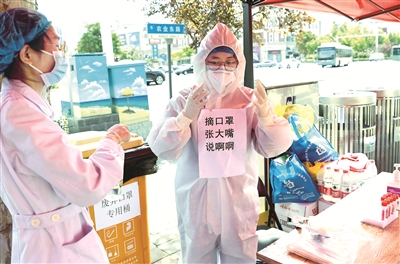 8月2日,在郑州市郑东新区一个核酸检测点,医务人员方欣雨在检测取样间隙休息。她的防护服上贴着提醒市民的内容,由于连续长时间工作,她的嗓子已经喊哑。近日,在河南省郑州市新冠肺炎疫情防控一线,医务人员为市民进行核酸检测取样,志愿者在高速路口、火车站进站口,提醒市民遵守防疫规定,查验核酸检测结果……这些在炎炎夏日里坚守的身影,组成一道疫情“封锁线”。