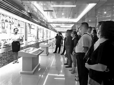日前,济南市历下区总工会组织一线干部职工赴日照开展疗休养活动。本次疗休养活动坚持突出一线的原则,40名职工主要为来自苦脏累险岗位的环卫职工,以及一线职工中的部分受表彰的先进代表。疗休养期间,开展了身心疗养、参观学习、红色教育等活动,通过疗、休、学相结合的方式,为职工提供了休养学习交流的平台。图为职工参观当地党史教育展馆。 (8月6日 《山东工人报》)