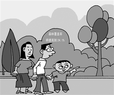 “十四五”时期经济社会发展主要目标提出,生态文明建设实现新进步,森林覆盖率提高到24.1%,生态环境持续改善,生态安全屏障更加牢固,城乡人居环境明显改善。(8月6日 《人民日报》)□毕传国