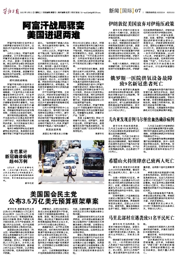 美国国会民主党 公布3.5万亿美元预算框架草案