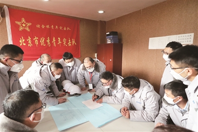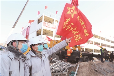 在小汤山医院工程建设过程中,褚金栋说:“最欣喜的是看到了队员们的成长。张凯是一名‘90后’,每天的工作是去施工现场拍照记录进度,收集工程项目信息。那时,张凯每天的步数占领微信运动的前几名,但是谁都不知道他患有甲沟炎,一走路,陪伴张凯的是钻心的疼痛。”和张凯一样参建过城市副中心A2项目的郭腾飞,1993年的他刚结婚3个多月。春节前,郭腾飞的岳父因突发脑出血住进重症监护室,大年三十也只有郭腾飞和妻子在医院照看。这次小汤山医院修缮工程,郭腾飞第一时间归队,一直坚守在施工现场,风雪无阻,计算每天的工程量,按时上报工程进度。