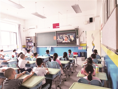“每天下午4点到5点半,我们都会给孩子们安排爱国主义电影,像《鸡毛信》《小兵张嘎》《闪闪的红星》《我和我的祖国》等优秀影片,孩子们都看过。托管班期间恰逢奥运会,我们也会给孩子播放一些中国选手参加比赛的片段让孩子们观看,大家一起为中国健儿加油,学习他们顽强拼搏的精神,这也是一种很好的爱国教育。”杨艳君笑着对记者说。
