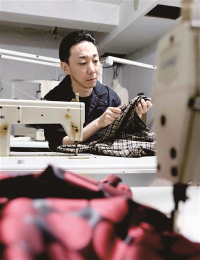 这里面有不少艰辛的时刻,但对高巍来说,兴趣和热爱就是最强的力量,他沉浸在艺术的世界里,设计了不少款式非常受欢迎的服装,“比如,我设计过一种牛仔布料的裙子,牛仔布料看起来破破的,透露着十足的个性,制作出来后,我总觉得牛仔裙还缺点什么,突然瞄到了工作室的沙发套。这个沙发套上的图案很别致,是印染的毛笔字,很有东方的气息。我灵感一下子上来了,剪了一块带毛笔字的沙发套,然后拼接到了我制作的牛仔裙上,竟然出现了很奇异的美感,很另类、很独特,这款裙子一面世,就非常受欢迎。”高巍说。