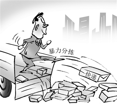 一个长宽各10厘米左右的快递,从一辆厢式货车上滚落下来,被分拣员一脚踢到两三米开外。随后,这名分拣员接过一个中等大小的快递,转身跨上两步,身体略向前倾,将快递扔到前方地上……这是记者近日在上海市青浦区一个韵达快递网点看到的一幕。扔、抛等动作几乎贯穿了整个分拣过程。(8月23日 《法治日报》)□陶小莫
