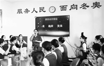 为备战冬奥,提升乘务人员服务水平,8月23日,京张高铁车队邀请石景山区培智学校教师、北京市防疫手语志愿群手语老师解莹,为职工进行手语教学。本报记者 彭程 通讯员 周轩如 摄影报道