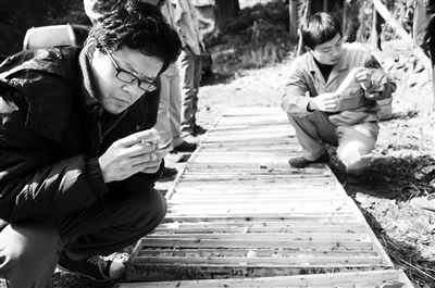 父亲经常去野外考察,一去就是两三个月,回来的时候,他的头发总是很长,一副风尘仆仆的模样。记忆中,父亲有两张照片给我留下了深刻的印象。一张是父亲站在吊桥上,满脸胡子,花白的头发被风吹乱,腰上挂着地质锤与罗盘,脚上穿着翻毛皮鞋,他身后的吊桥周围用粗绳结成网子围着,有些地方绳已经断了,而下面就是极深的河谷,河谷里的浪花有十几米高。另外一张照片是父亲被挂在溜索上,只能模糊地看到他的一个身影,下面是深邃的峡谷,父亲被云雾围绕着,如同空中飞人,太阳就在他的身边。
