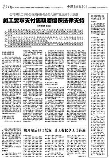 员工要求支付离职赔偿获法律支持