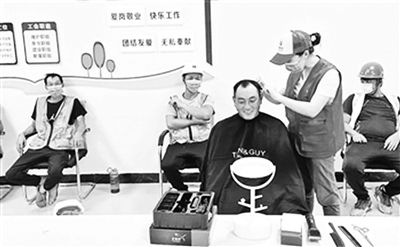 为建筑工地上的职工开设“爱心理发室”,企业组织青年志愿者提供爱心理发服务。一把剪刀、一把推子、一把梳子、一张围布,青年志愿者用这些简单的理发工具经过消毒后,切实解决了职工们“头”等大事的需求。为了更好服务职工,“爱心理发室”还开通了网上预约服务,职工们可以合理安排时间来理发,让大家感觉很方便。