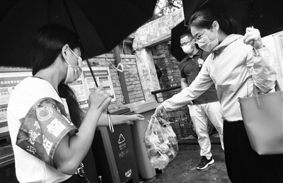 近日,建国门街道举办第二个垃圾分类“3个21天”习惯养成日启动仪式。9月1日起,各社区将发动每家每户开展桶前值守、垃圾分类“张榜”活动,以及深入巩固、提升平房区“垃圾不落地”和部分楼房区“定时定点投放”工作等。本报记者 边磊 于佳 摄影报道