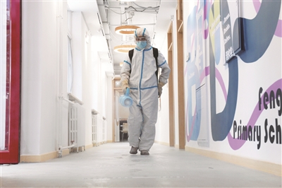 测量体温、戴口罩、校园消毒……十一学校丰台小学严格落实教育部的相关防控要求,开学前已完成各类防疫物资储备,并对全校全部场所进行了环境消杀。目前因疫情暂时不能到校的学生有4人,学校给他们发放了教材,制定了“一生一策”的个性化方案,线上指导他们自学,确保学生返校后能跟上学习进度。