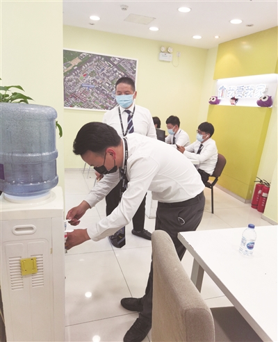 如今为了做好疫情期间的安全防控,我爱我家苏州街旗舰店每天上午和下午都会进行两次消杀,还会让进店工作的员工戴好口罩,扫健康宝、测体温,没问题后,才能上岗。每天在接待来看房的客户时,也会让客户扫健康宝,并对客户进行体温检测,还会叮嘱客户戴好口罩,做好安全防护。“工会设立的暖心驿站只占了小小的一个角落,但是,却给职工们,尤其是户外劳动者们生活带来了很大的便利,真的很不错!”外卖小哥感慨地说。