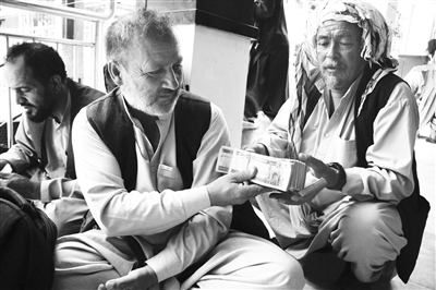 9月4日,阿富汗喀布尔的主要货币交易市场重新营业。图为阿富汗人在喀布尔一家货币交易市场内兑换货币。
