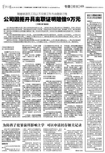 公司因拒开具离职证明赔偿9万元