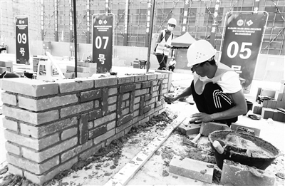 砌筑工赛项裁判长李松岷告诉记者,本次大赛依据国家职业技能标准,注重基本技能,体现现代制造技术,结合生产实际考核参赛选手职业综合能力,并对技能人才培养起到示范指导作用。比赛分为理论考试和实操,理论考试成绩占总成绩的30%,实操比赛成绩占总成绩的70%。理论和实操成绩相同时,以完赛时间作为评判标准。