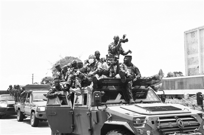 中国驻几内亚大使馆6日在接受新华社记者采访时表示,目前在几华侨华人的人身安全未受影响,尚未有华侨华人伤亡情况的报告。使馆同时提醒在几中国公民保持冷静,暂勿外出,注意观察周边形势,切实加强安全防范。图为在几内亚科纳克里人民宫外拍摄的政变军队。