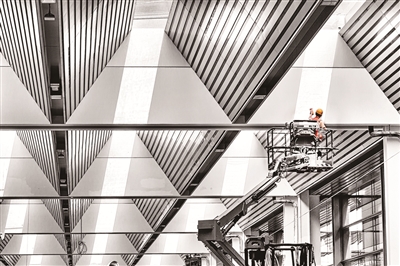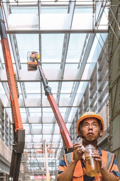 在施工现场,5000多名中铁建工建设者遍布40万平方米作业面。据中铁建工现场负责人介绍,站房屋面工程已基本完成,站房外幕墙龙骨加工安装全面推进,南北进站大厅立面玻璃安装有序铺开,预计10月初可实现站房空间“封闭”,为室内精装修工程全面推进创造条件,以确保北京丰台站年底具备开通运营条件。