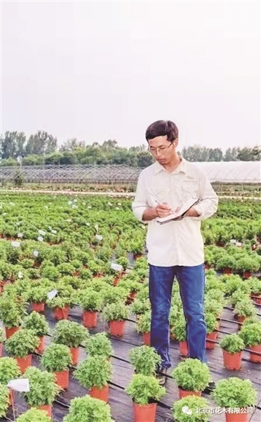 王中轩大学学的观赏园艺专业,从北京林业大学硕士毕业后来到了北京城建园林花木公司品种资源所,“我对花卉,有一种很深的爱,正是这种热爱,让我一直坚持了下来。”