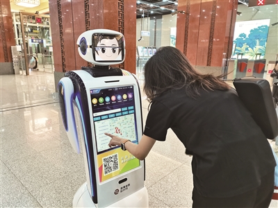 9月28日,在京港地铁4号线和16号线国家图书馆站,3台科技感十足的地铁车站智能服务机器人正式“上岗”。京港地铁相关负责人介绍,这款人工智能机器人可通过语音交互、图像化表达等方式实现人机交流,为乘客提供出行查询、实地引领及运营提示等智能服务。